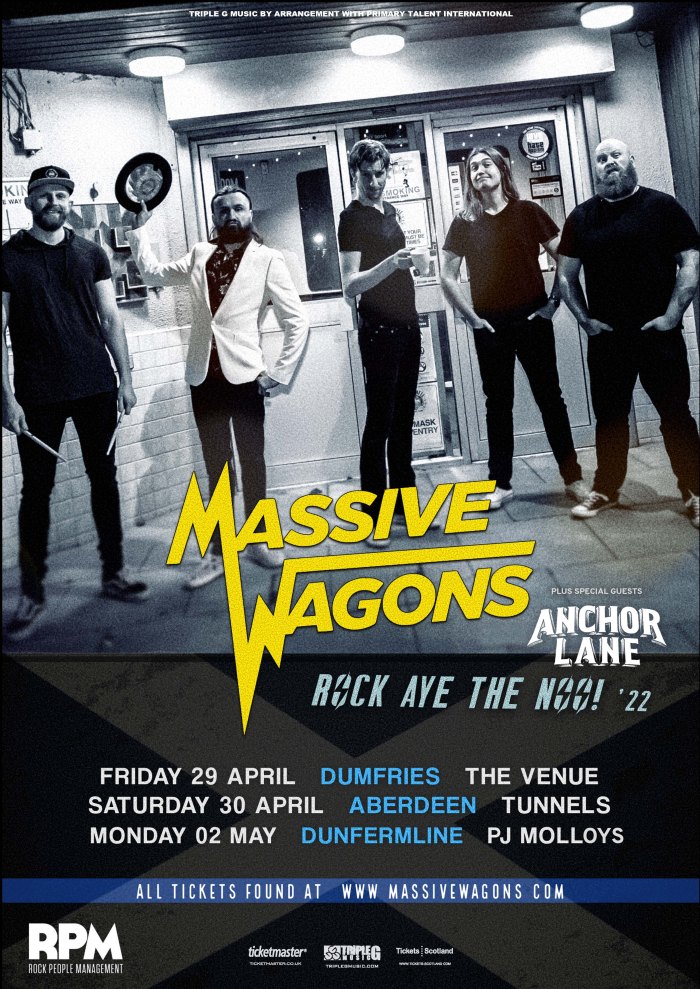 Anchor Lane will join Massive Wagons on their upcoming live dates across Scotland this spring. For those who have seen both bands before will know that the 'Rock Aye The Noo' party will be in full flow as they descend upon Dumfries, Aberdeen and Dunfermline over the early May bank holiday (details below): 29 APRIL … Continue reading ANCHOR LANE ANNOUNCED AS SPECIAL GUESTS TO MASSIVE WAGONS