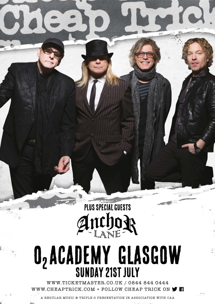 Anchor Lane have announced that the hard rock four piece have been invited as special guests to rock legends Cheap Trick on their Glasgow show this summer. Taking place in the O2 Academy Glasgow, Anchor Lane will return to the venue on Sunday 21st July 2019 with some old and new tracks to delight fans, … Continue reading Anchor Lane Announced as Special Guests to Cheap Trick