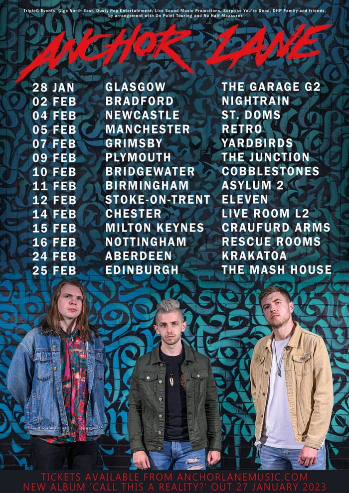 Anchor Lane Announce Headline Tour Anchor Lane will be on the road in February 2023 to celebrate the release of their highly anticipated new album 'Call This A Reality?'.